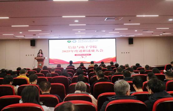 12月22日上午,色直播 2025年度述职述廉大会在信息科学实验楼202报告厅召开,色直播 全体领导班子成员出席会议并作述职述廉报告,全院教职工参会。大会由色直播 党委副书记、副院长侯明佳主持。